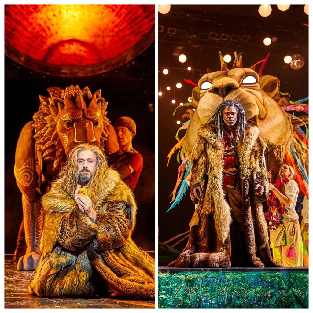 The puppetry used on the show is innovative and reminiscent of techniques used in The Lion King musical, yet also different. The beauty of the Robin’s flight is expressed through graceful dance and the flying birds are a sight to behold as the ropes allow them to lift off and soar around the stage. But of course, it is Aslan, who had all eyes on him and his entrance. A majestically designed, bronze-looking lion worked by three puppeteers distances itself from Simba/Mufasa in The Lion King, however, as impressive as it looked and was manoeuvred, Aslan’s speaking voice was provided by a separate actor from the puppeteers.